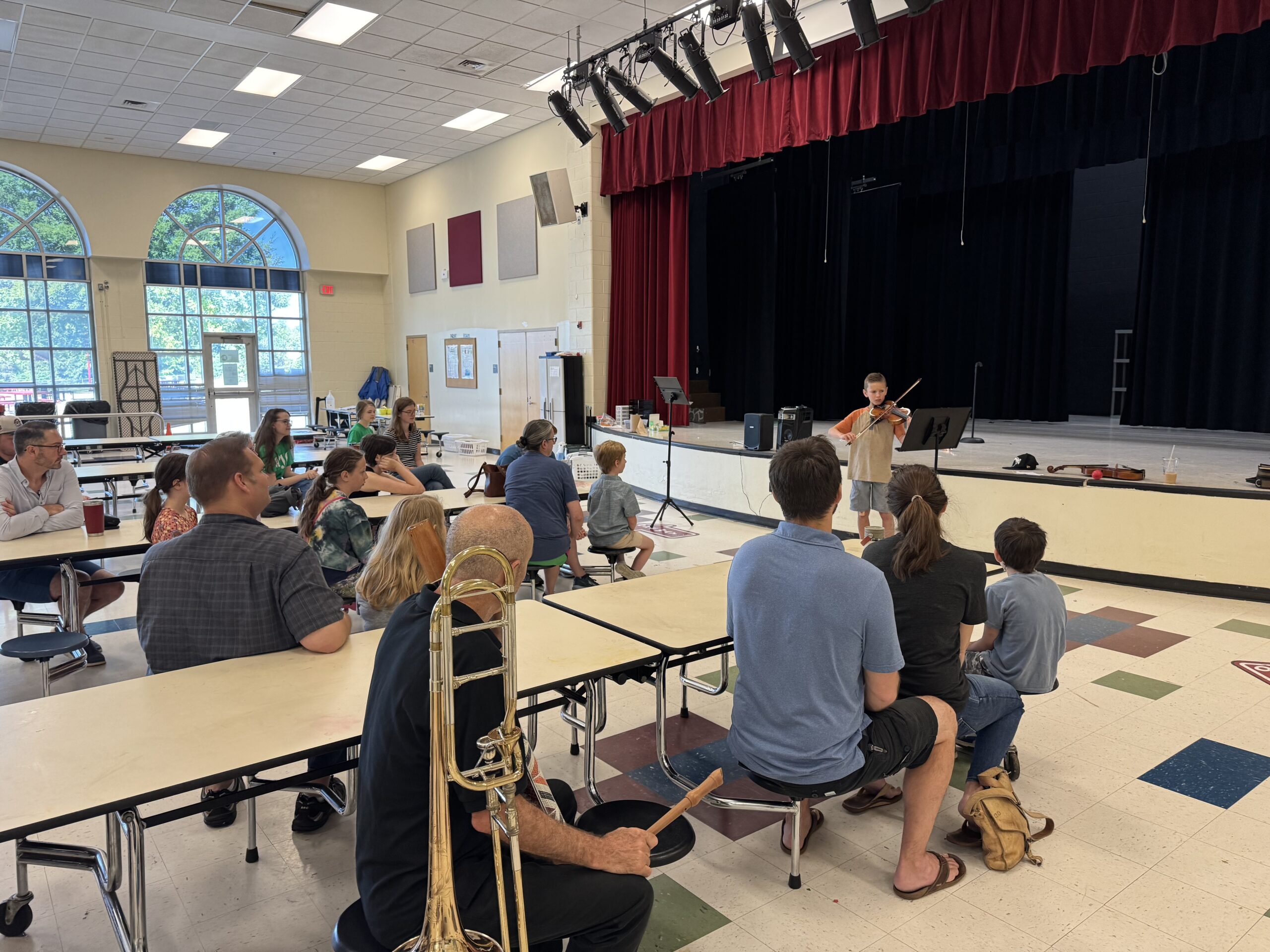June 21, 2025 [Huntersville, North Carolina] – Being part of an orchestra is uncharted territory for many young musicians and their families. To help prepare them, NCYO hosted an Exploration Day for new students and their parents. During this half day camp, students met with NCYO artistic faculty to get to know each other, play games, and get to know the instruments they’ll be playing in the coming season. Likewise, parents attended an informational session where they had the opportunity to learn about what to expect, ask questions, and mingle with each other. At the end of the session students and parents got to see what they have to look forward to as they were treated to performances by a few current NCYO students.