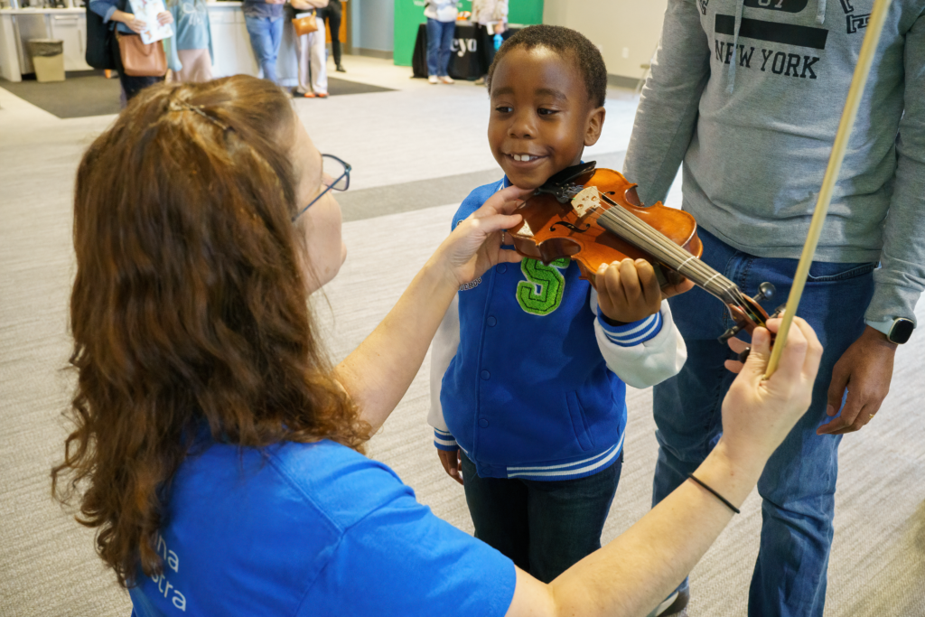 Following the performance, families and children had the opportunity to explore a variety of orchestral instruments and recieved hands-on instruction from NCYO’s knowledgable artistic faculty and student and family volunteers.